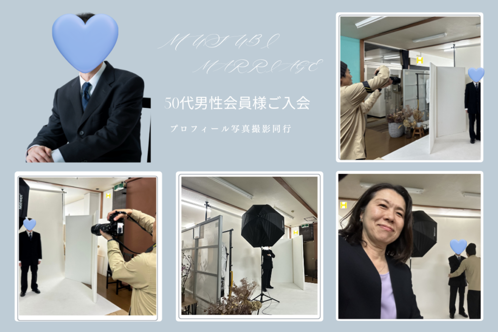 本日、50代男性がご入会され、プロフィール写真撮影に同行しました。